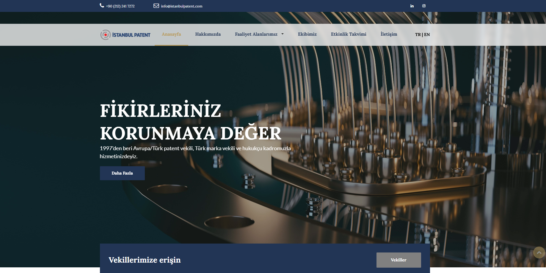 تم تطوير موقع مع عرض الخدمات والتقديم عبر الإنترنت لشركة İstanbul Patent.